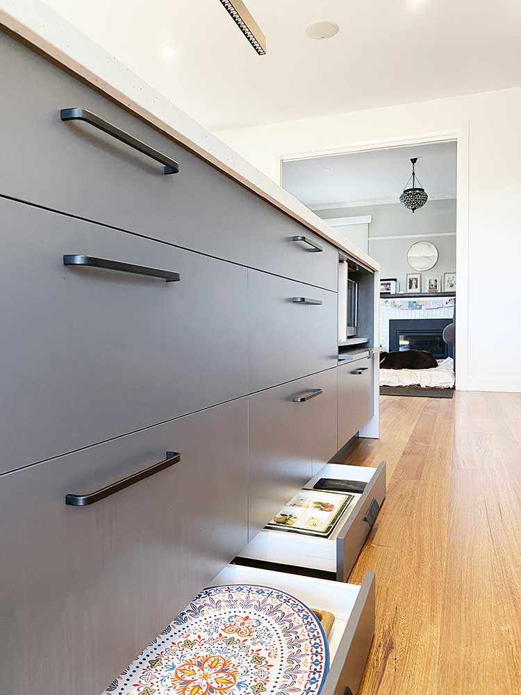 | Hardware: | Blum soft close hinge Blum wesco pullout rubbish bin Blum antaro drawer / inner drawer Hafele slido eclipse pocket door |