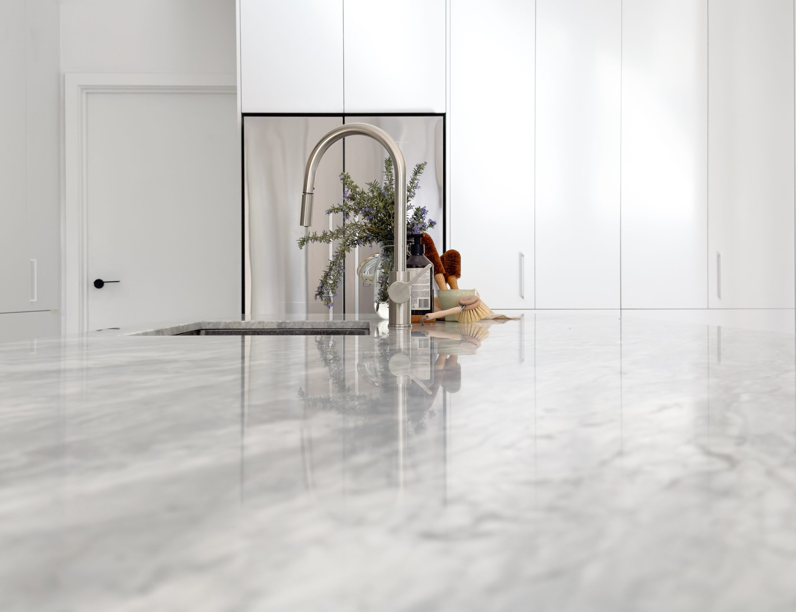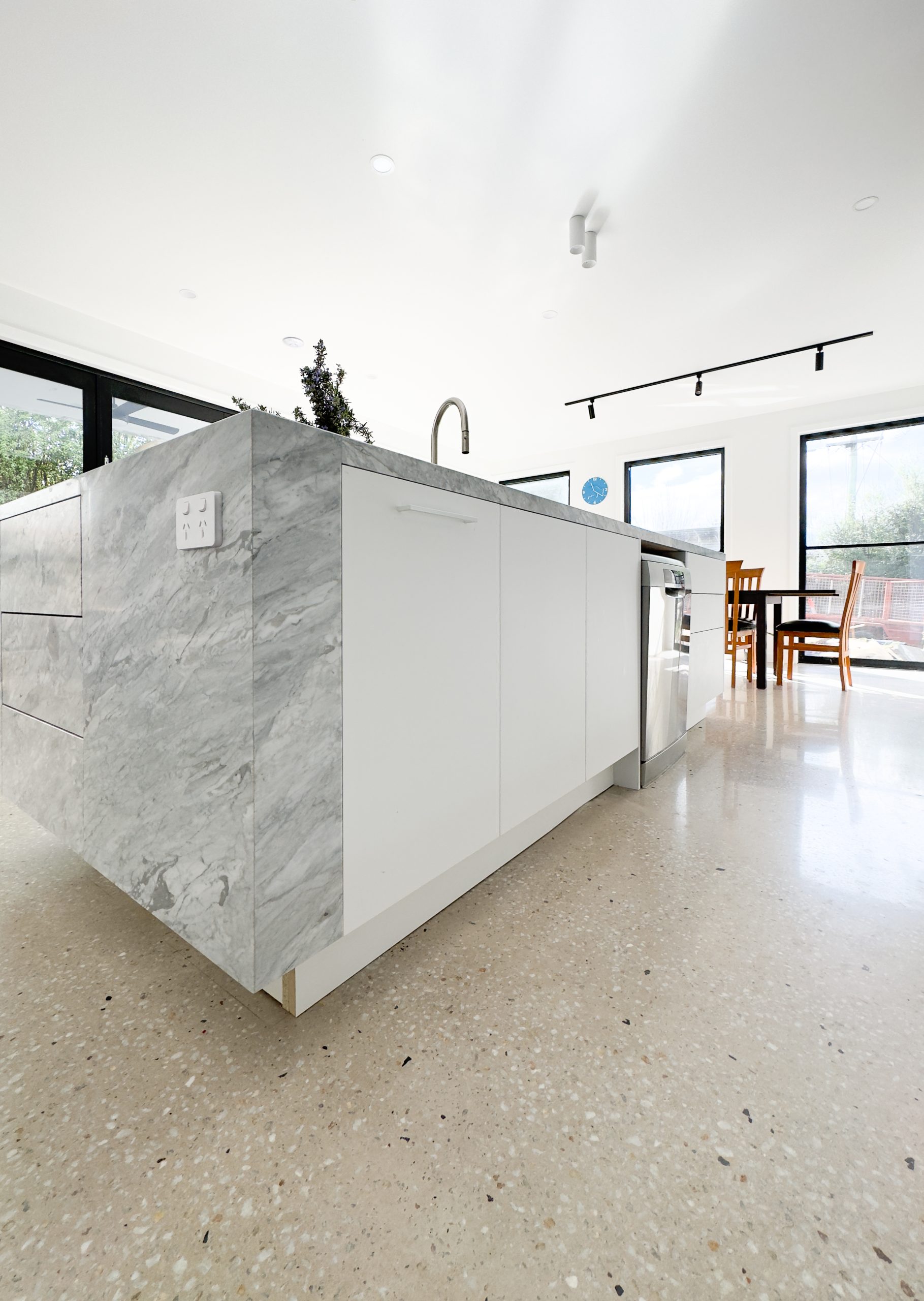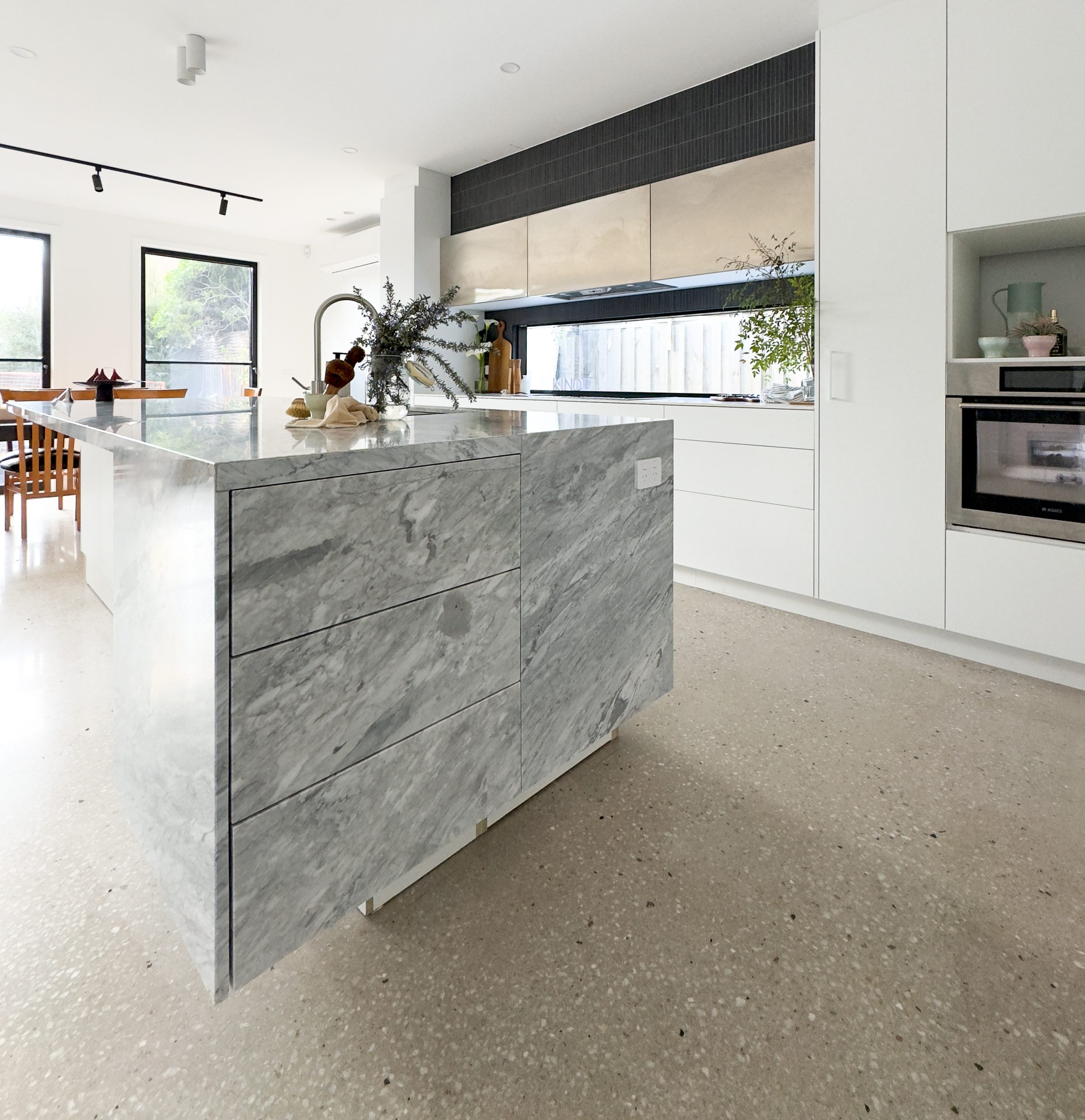 | Stone: | Neolith Arctic White 12mm-Cooktop bench Neolith Calacatta Royal 12mm |