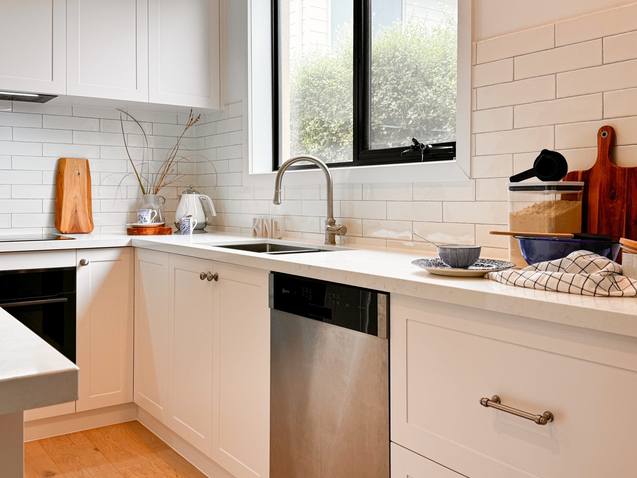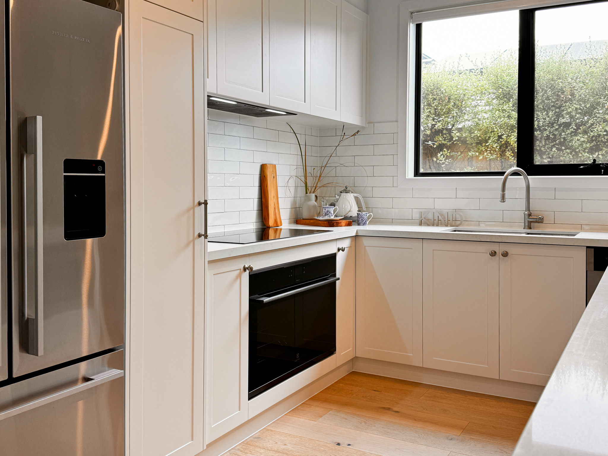 | Doors and panel: | 2PAC Shaker Style (Dulux Antique White colour) and Laminex Chalk White |